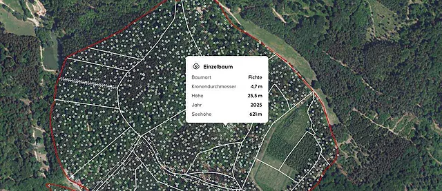 Ein zentrales Kompetenzfeld ist die KI-gestützte Einzelbaumableitung. Diese intern entwickelte Methode macht Forstinventuren präziser, effizienter und wirtschaftlicher. Sie basiert auf jahrzehntelanger Arbeit mit realen Beständen und konkreten Anforderungen aus der Praxis.